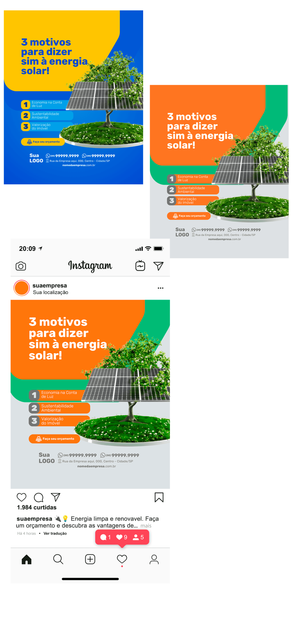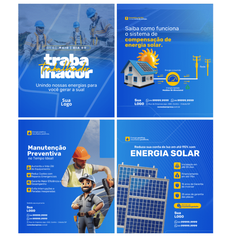 Esse pack com mais de 130 artes prontas para Energia Solar foi feito pra facilitar sua rotina, atrair clientes e mostrar o profissional que você é, sem perder horas tentando montar posts. Aproveite agora, antes que a oferta acabe.